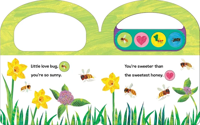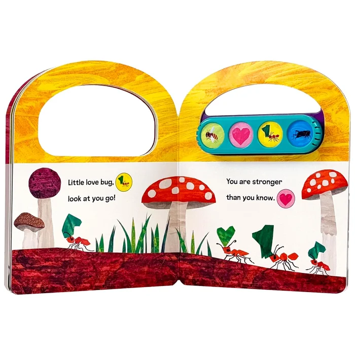The world is full of love! Press sound buttons to listen to sweet sounds with your little love bug. Book has a built-in handle so little ones can carry it with them while they play.