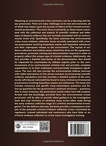 Obtaining an environmental crime conviction can be a daunting task for any prosecutor. There are many challenges to be met and overcome, all of which may impact upon the success or failure of the criminal environmental prosecution. This text s focus is primarily on those issues associated with the collection and analysis of scientific evidence and other types of physical evidence that are normally associated with an environmental crime trial. Specifically, the book examines the environmental crime scene evidence collection issues normally associated with criminal prosecutions involving hazardous wastes and hazardous substances and their subsequent release to the environment. The myriad of evidence collection and analysis issues raised here focus on the equipment, procedures, protocols, training and documentation required in order to properly collect this unique type of criminal evidence. Additionally, the text provides a detailed description of the documentation that should be requested for examination by defense experts prior to the commencement of an environmental criminal trial and provides complete explanations as to their evidentiary and potentially exculpatory significance. The text will also provide the environmental defense attorney with viable alternatives to the all-too-common environmental scientific evidence stipulations and also provides a detailed analysis of the commonly self-induced vulnerabilities found in many criminal environmental prosecutions involving hazardous wastes and substances. The book also includes numerous and specific cross-examination questions and follow-up questions for the government s technical witnesses — questions, that in many instances, the prosecution would rather have left unasked. Armed with the knowledge provided here, the environmental crimes prosecutor will be able to provide initial guidance to the investigative team that may minimize or eliminate many errors often made during the early evidence collection stage of a criminal environmental investigation. For the defense attorney, the book provides a consequence analysis of the potential criminal evidence collection errors committed by regulatory- trained individuals and contractors who have little or no criminal evidence collection or crime scene investigation training.