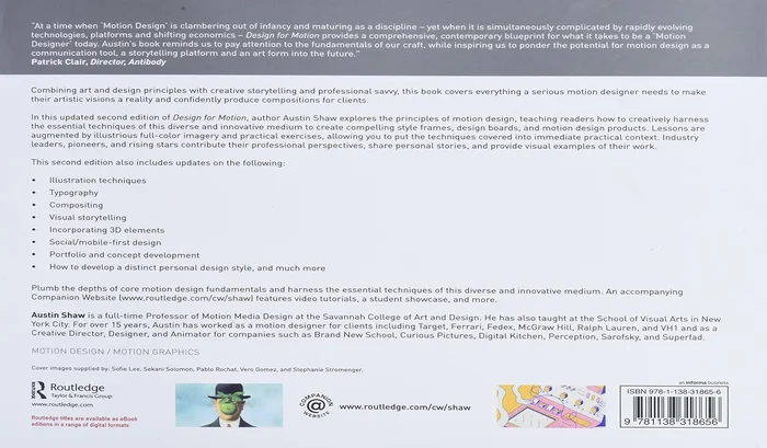 Plumb the depths of core motion design fundamentals and harness the essential techniques of this diverse and innovative medium. An accompanying Companion Website (www.routledge.com/cw/shaw) features video tutorials, a student showcase, and more.