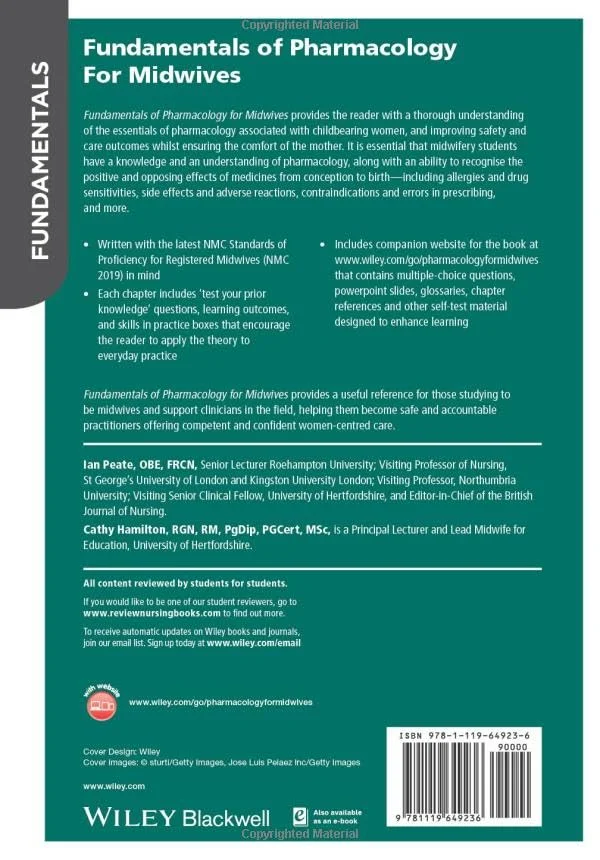 Includes companion website for the book at www.wiley.com/go/pharmacologyformidwives that contains multiple-choice questions, powerpoint slides, glossaries, chapter references and other self-test material designed to enhance learning