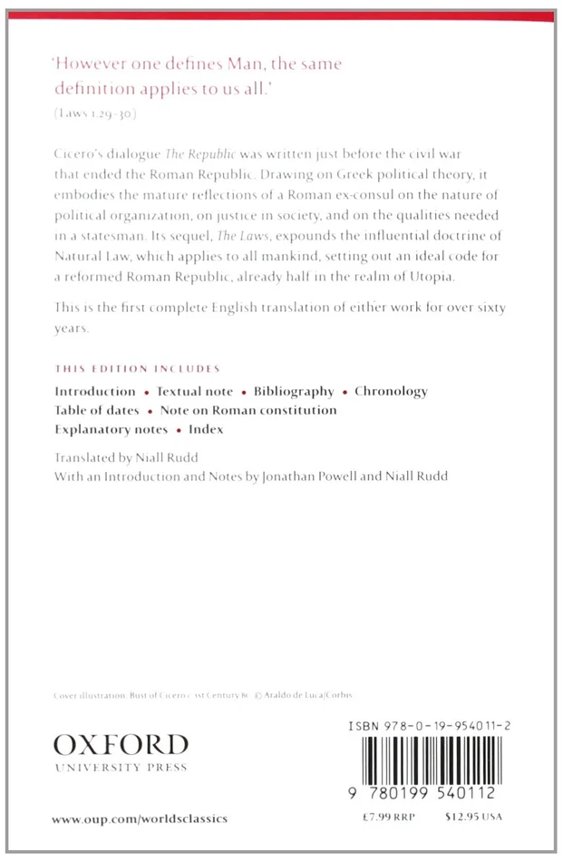 is an impassioned plea for responsible government written just before the civil war that ended the Roman Republic in a dialogue following Plato. Drawing on Greek political theory, the work embodies the mature reflections of a Roman ex-consul on the nature of political organization, on justice in society, and on the qualities needed in a statesman. Its sequel,