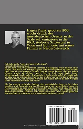 “Halt mich fest, Henry! Sag mir, dass die Welt sch?n ist, dass wir frei sind, dass wir uns bewegen k?nnen, dass wir atmen k?nnen, dass wir gehen k?nnen, wohin wir wollen, Henry! Das ist doch unser Recht, unser Menschenrecht, nicht wahr, des Menschen Recht, nicht wahr? Wer ma?t sich an 邦ber uns zu entscheiden, was wir tun wollen, was wir werden wollen, wie wir leben wollen, wer wir sind? Wer sind die? Wieso d邦rfen die das? Wer gibt ihnen verdammt nochmal das Recht?” Als das marode politische System eine unertr?gliche Enge in ihr Leben installiert und Denunzierung und 邦berwachung der menschlichen Natur ein Normalzustand zu sein scheint, entscheiden sich Henry und Lisa, das Land ihrer unschuldigen Kindheit f邦r immer zu verlassen. Die Reinheit und Aufrichtigkeit ihrer Liebe aber wird dabei zum Fiasko – bis 25 Jahre sp?ter die Wahrheit ans Licht kommt und ein seelisches Erdbeben ausl?st.
