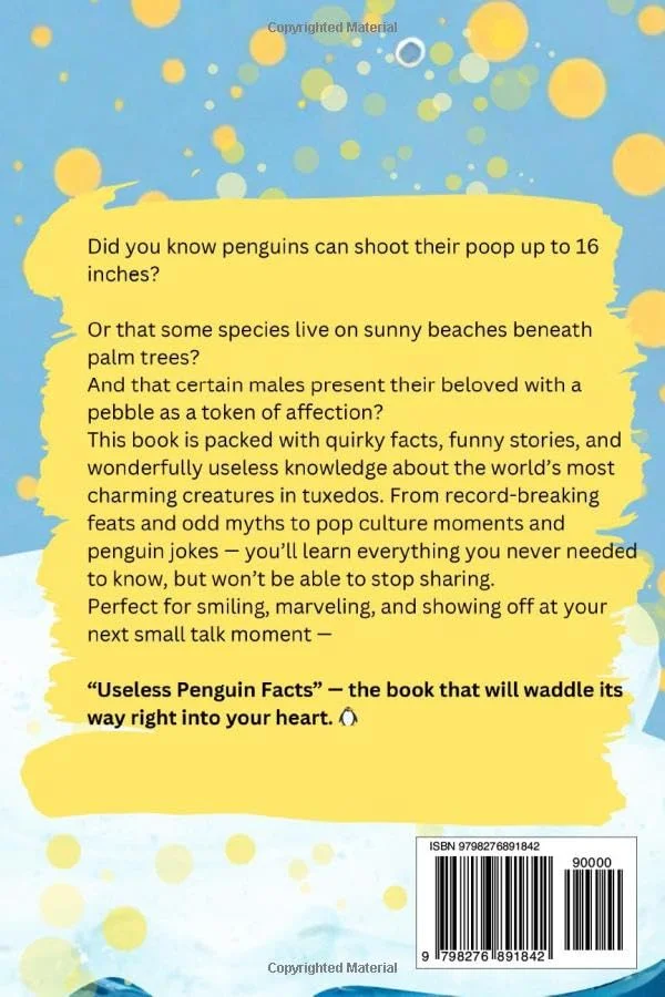 Learn how penguins use pebbles to flirt, how far they can launch their droppings (yes, scientists measured it), and why some sound suspiciously like donkeys. Packed with curious trivia, lighthearted humor, and plenty of ※did you know?§ moments, this book is the ultimate guide to useless〞but irresistible〞penguin knowledge.
