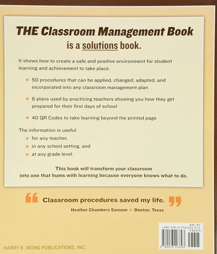 This is a solutions book that shows how to create a safe and positive environment for student learning and achievement to take place. It offers 50 procedures that can be applied, changed, adapted, and incorporated into any classroom management plan, 6 plans used by practicing teachers showing you how they get prepared for their first days of school, and 40 QR codes to take learning beyond the printed page. This information is useful for any teacher, in any school setting, and at any grade level. This book will transform your classroom into one that hums with learning because everyone knows what to do.
