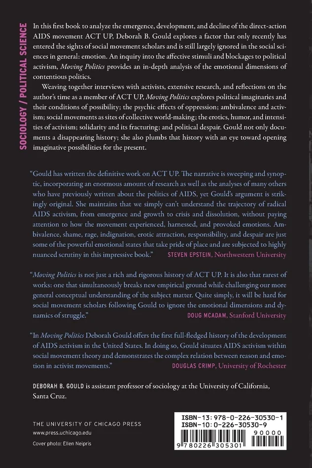 Surprisingly overlooked by many scholars of social movements, emotion, Gould argues, plays a fundamental role in political activism. From anger to hope, pride to shame, and solidarity to despair, feelings played a significant part in ACT UP*s provocative style of protest, which included raucous demonstrations, die-ins, and other kinds of street theater. Detailing the movement*s public triumphs and private setbacks,