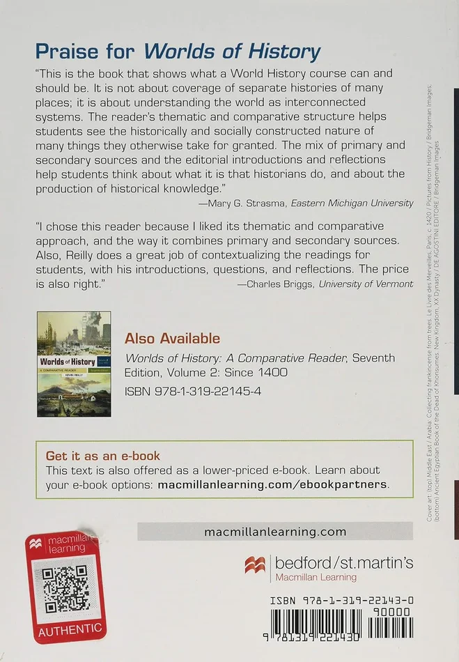 offers a flexible comparative and thematic organization that accommodates a variety of teaching approaches and helps students to make cross-cultural comparisons. Thoughtfully compiled by a distinguished world historian and community college instructor, each chapter presents a wide array of primary and secondary sources arranged around a major theme 求 such as universal religions, the environment and technology, or gender and family 求 across two or more cultures, along with pedagogy that builds students* capacity to analyze and interpret sources, and think critically and independently.
