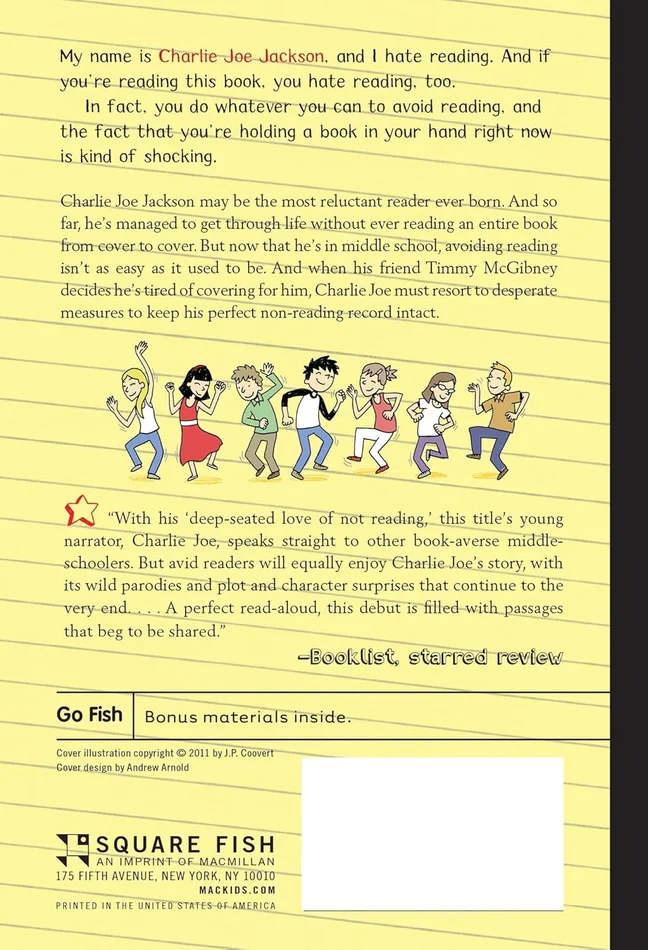 Charlie Joe Jackson may be the most reluctant reader ever born. And so far, he’s managed to get through life without ever reading an entire book from cover to cover. But now that he’s in middle school, avoiding reading isn’t as easy as it used to be. And when his friend Timmy McGibney decides that he’s tired of covering for him, Charlie Joe finds himself resorting to desperate measures to keep his perfect record intact.
