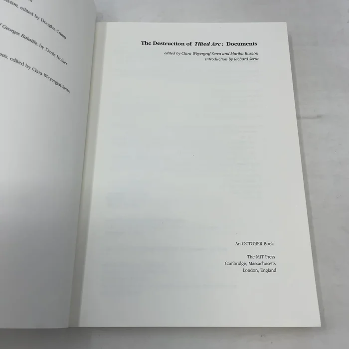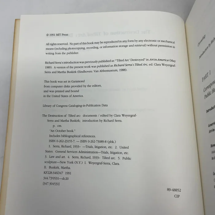 , a 120-foot curved Cor-Ten steel structure in New York City’s Federal Plaza, was destroyed in the spring of 1989 by the General Services Administration, the federal agency that had commissioned and installed what was Serra’s most ambitious and probably most important public sculpture. These documents from the public hearing and the court proceedings are an essential primary source for scholars of art and law, providing a complete and moving record of censorship in the arts.