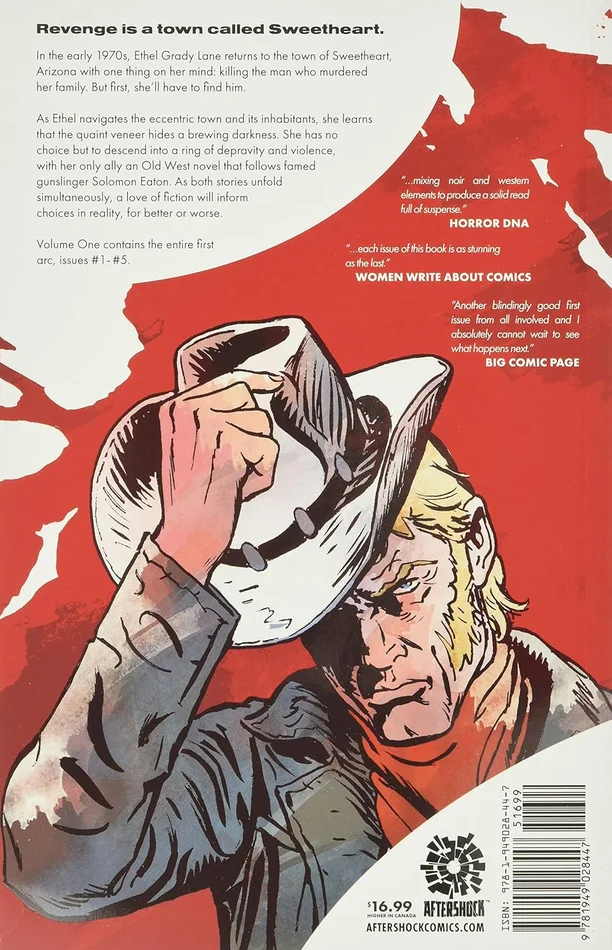 As Ethel navigates the eccentric town and its inhabitants, she learns that the quaint veneer hides a brewing darkness. She has no choice but to descend into a ring of depravity and violence, with her only ally an Old West novel that follows famed gunslinger Solomon Eaton. As both stories unfold simultaneously, a love of fiction informs choices in reality, for better or worse.
