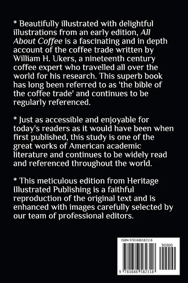 * Beautifully illustrated with delightful illustrations from an early edition, All About Coffee is a fascinating and in depth account of the coffee trade written by William H. Ukers, a coffee expert who travelled all over the world for his research. This superb book has long been referred to as ‘the bible of the coffee trade’ and continues to be regularly referenced.* Just as accessible and enjoyable for today’s readers as it would have been when first published, this study is one of the great works of American academic literature and continues to be widely read and referenced throughout the world.* This meticulous edition from Heritage Illustrated Publishing is a faithful reproduction of the original text and is enhanced with images carefully selected by our team of professional editors.