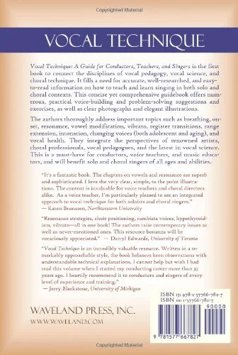 The authors thoroughly address important topics such as breathing, onset, resonance, vowel modification, vibrato, register transitions, range extension, intonation, changing voices (both adolescent and aging), and vocal health. They integrate the perspectives of renowned artists, choral professionals, vocal pedagogues, and the latest in vocal science. This is a must-have for conductors, voice teachers, and music educators, and will benefit solo and choral singers of all ages and abilities.