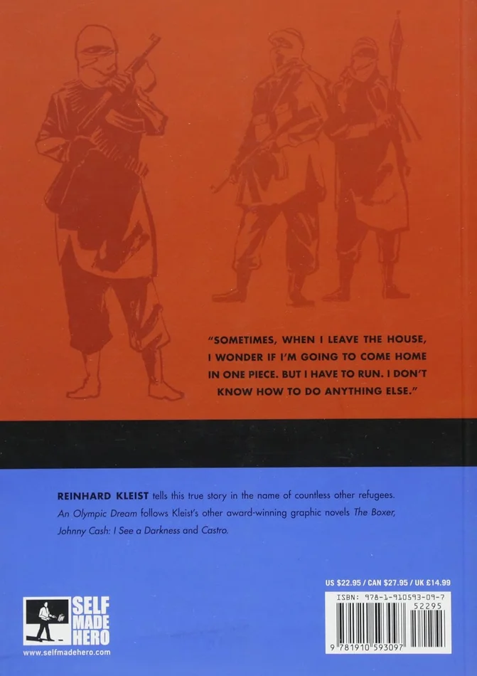 follows Omar*s second attempt to represent her country at the Olympics, this time in London. Reinhard Kleist pictures the athlete training in one of the most dangerous cities in the world; her passage through Sudan and into Libya; and her fateful attempt to reach Europe. By telling the story of one remarkable woman, Kleist gives voice to the thousands of migrants who risk their lives daily for a better future.