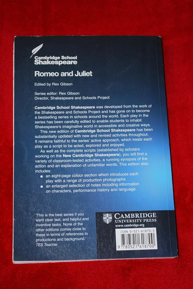 This edition of Romeo and Juliet is part of the groundbreaking Cambridge School Shakespeare series established by Rex Gibson. Remaining faithful to the series’ active approach it treats the play as a script to be acted, explored and enjoyed. As well as the complete script of the play, you will find a variety of classroom-tested activities, an eight-page colour section and a selection of notes including information on characters, performance, history and language.