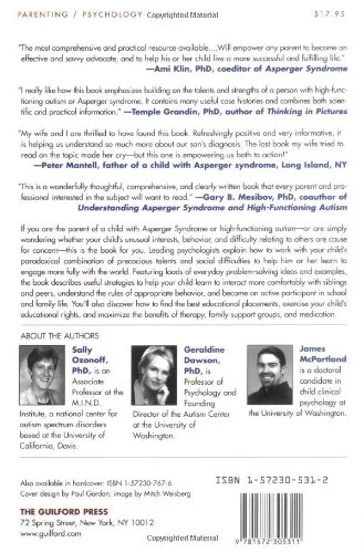 Asperger Syndrome and high-functioning autism are detected earlier and more accurately today than ever before. Children and teens with these disorders often stand out for their precocious intelligence and language abilities–yet profound social difficulties can limit every aspect of their lives. This hopeful, compassionate guide shows parents how to work with their child’s unique impairments and capabilities to help him or her learn to engage more fully with the world and live as self-sufficiently as possible. From leading experts in the field, the book is packed with practical ideas for helping children relate more comfortably to peers, learn the rules of appropriate behavior, and participate more fully in school and family life. It also explains what scientists currently know about autistic spectrum disorders and how they are diagnosed and treated. Real-life success stories, problem-solving ideas, and matter-of-fact advice on everything from educational placements to career planning make this an indispensable reference that families will turn to again and again.