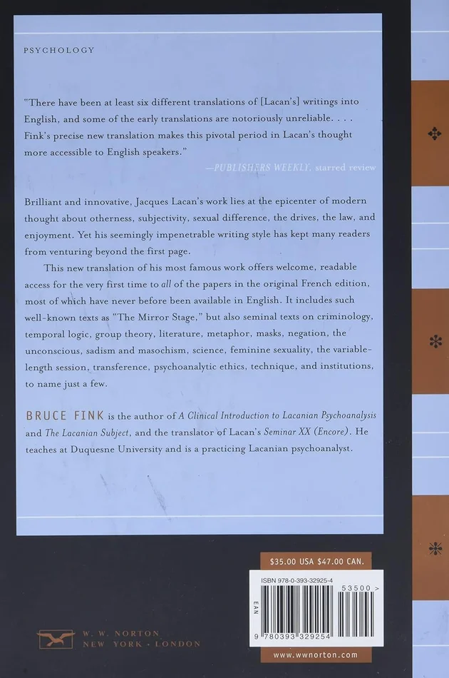 Brilliant and innovative, Jacques Lacan’s work lies at the epicenter of modern thought about otherness, subjectivity, sexual difference, the drives, the law, and enjoyment. This new translation of his complete works offers welcome, readable access to Lacan’s seminal thinking on diverse subjects touched upon over the course of his inimitable intellectual career.