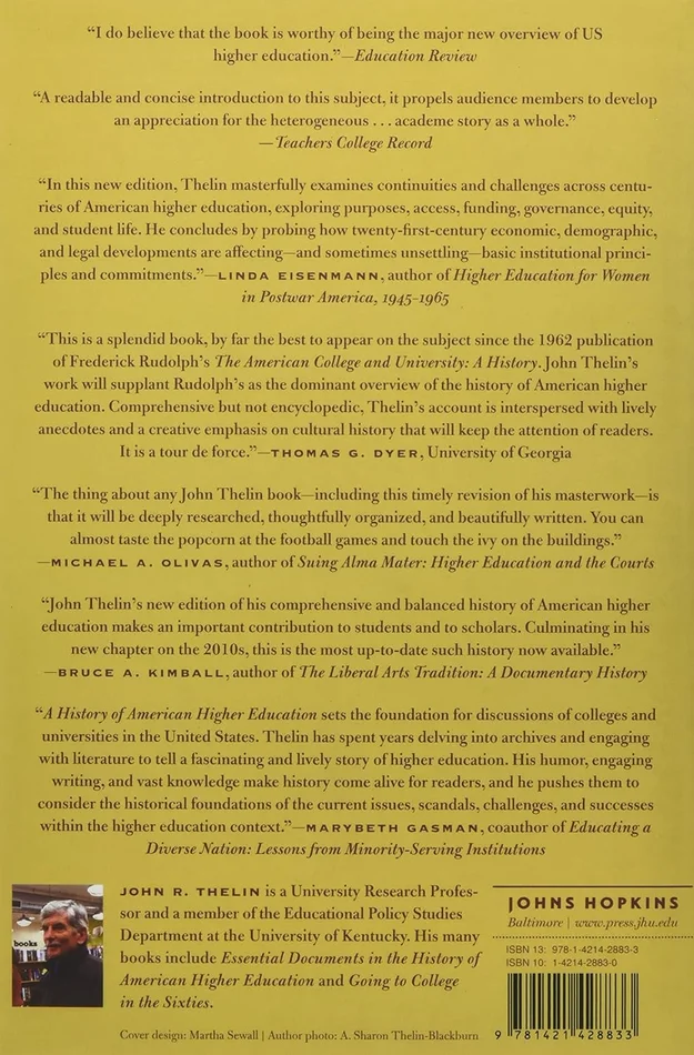 Anyone studying the history of this institution in America must read Thelin’s classic text, which has distinguished itself as the most wide-ranging and engaging account of the origins and evolution of America’s institutions of higher learning.