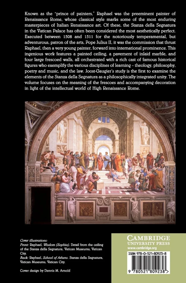 Raphael’s Stanza della Segnatura in the Vatican Palace has often been considered the artist’s most aesthetically perfect work. Executed between 1508 and 1511, it features a painted ceiling, a pavement of inlaid marble, and four frescoed walls, all orchestrated with a cast of famous historical figures who exemplify the various disciplines of learning. Joost-Gaugier’s study is the first to examine the elements of the Stanza della Segnatura as an ensemble, exploring the meaning of the frescoes and accompanying decoration in light of recent studies into the intellectual world of High Renaissance Rome.