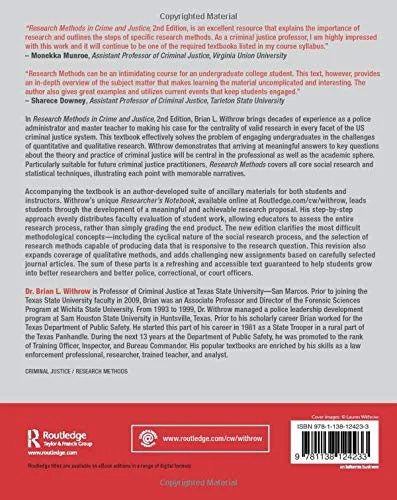 Brian Withrow, a widely published academic researcher and former Texas State Trooper, developed this approach for his own undergraduate Research Methods class. He persuasively demonstrates that research skills aren*t just essential to university academic researchers but to successful criminal justice practitioners as well. More than 80 short, sharply focused examples throughout the text rely on research that is conducted by, on behalf of, or relevant to criminal justice practitioners to engage students* interest like no other text of its kind. Extensive web materials all written by the author provide an array of instructor support material, including a