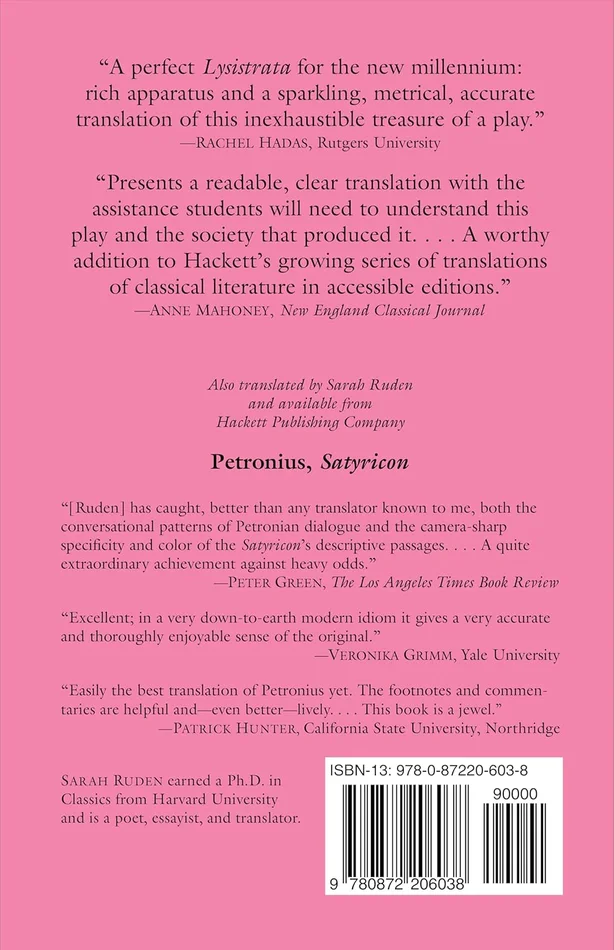 This rollicking new translation of Aristophanes’ comic masterpiece is rendered in blank verse for dialogue and in lyric meters and free verse for the songs. Appended commentary essays–on Athenian democracy, ancient Greek warfare, Athenian women, and Greek Comedy–offer lively and informative discussions not only of Aristophanes, but of the broader fifth-century social, political, and cultural context as well.