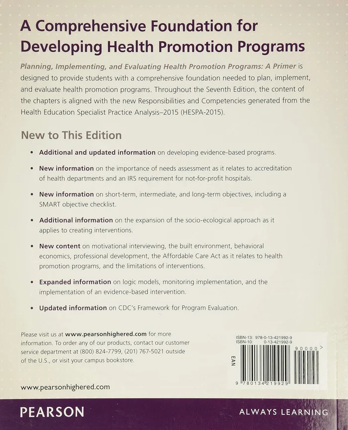 provides students with a comprehensive overview of the practical and theoretical skills needed to plan, implement, and evaluate health promotion programs in a variety of settings. The