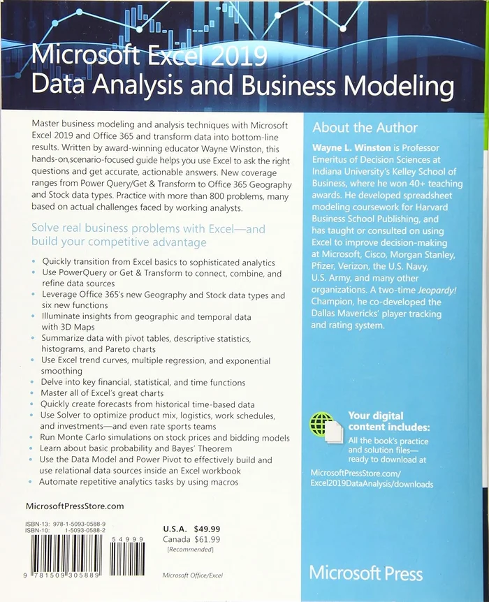 Master business modeling and analysis techniques with Microsoft Excel 2019, and transform data into bottom-line results. Written by award-winning educator Wayne Winston, this hands-on, scenario-focused guide shows you how to use the latest Excel tools to integrate data from multiple tables每and how to effectively build a relational data source inside an Excel workbook.
