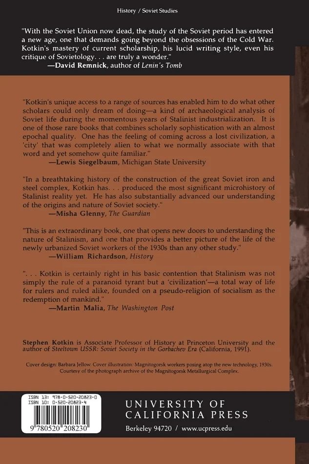 Kotkin depicts a whole range of life: from the blast furnace workers who labored in the enormous iron and steel plant, to the families who struggled with the shortage of housing and services. Thematically organized and closely focused,