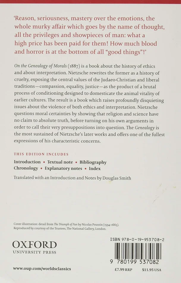 (1887) is a book about interpretation and the history of ethics which raises profoundly disquieting issues about the violence of both. This is the most sustained of Nietzsche’s later works and offers one of the fullest expressions of his characteristic concerns. The introduction places his ideas within the cultural context of his own time and stresses the relevance of his work for a contemporary audience.