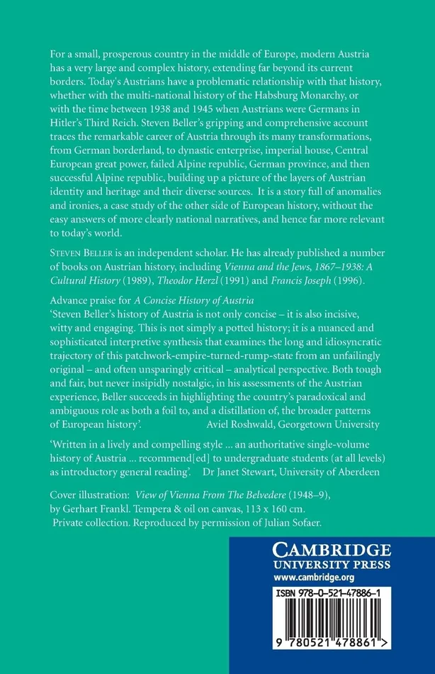 For a small, prosperous country in the middle of Europe, modern Austria has a very large and complex history, extending far beyond its current borders. Today’s Austrians have a problematic relationship with that history, whether with the multi-national history of the Habsburg Monarchy, or with the time between 1938 and 1945 when Austrians were Germans in Hitler’s Third Reich. Steven Beller’s gripping and comprehensive account traces the remarkable career of Austria through its many transformations, from German borderland, to dynastic enterprise, imperial house, Central European great power, failed Alpine republic, German province, and then successful Alpine republic, building up a picture of the layers of Austrian identity and heritage and their diverse sources. It is a story full of anomalies and ironies, a case study of the other side of European history, without the easy answers of more clearly national narratives, and hence far more relevant to today’s world.