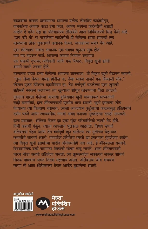 FOR HER EXCITING DEBUT IN HARDCOVER, NEW YORK TIMES BESTSELLING AUTHOR KAREN ROSE DELIVERS A HEART-STOPPING SUSPENSE NOVEL THAT PICKS UP WHERE DIE FOR ME LEFT OFF, WITH A DETECTIVE DETERMINED TO TRACK DOWN A BRUTAL MURDERER. SPECIAL AGENT DANIEL VARTANIAN HAS SWORN TO FIND THE PERPETRATOR OF MULTIPLE KILLINGS THAT MIMIC A 13-YEAR-OLD MURDER LINKED TO A COLLECTION OF PHOTOGRAPHS THAT BELONGED TO HIS BROTHER, SIMON, THE RUTHLESS SERIAL KILLER WHO MET HIS DEMISE IN DIE FOR ME. DANIEL IS CERTAIN THAT SOMEONE EVEN MORE DEPRAVED THAN HIS BROTHER COMMITTED THESE CRIMES, AND HE`S DETERMINED TO BRING THE CURRENT MURDERER TO JUSTICE AND SOLVE THE MYSTERIOUS CRIME FROM YEARS AGO. WITH ONLY A HANDFUL OF IMAGES AS A LEAD, DANIEL`S SEARCH WILL LEAD HIM BACK THROUGH THE DARK PAST OF HIS OWN FAMILY, AND INTO THE REALM OF A MIND MORE SINISTER THAN HE COULD EVER IMAGINE. BUT HIS QUEST WILL ALSO DRAW HIM TO ALEX FALLON, A BEAUTIFUL NURSE WHOSE TROUBLED PAST REFLECTS HIS OWN. AS DANIEL BECOMES ATTACHED TO ALEX, HE DISCOVERS THAT SHE IS ALSO THE OBJECT OF THE OBSESSED MURDERER. SOON, HE WILL NOT ONLY BE RACING TO DISCOVER THE IDENTITY OF THIS MACABRE CRIMINAL, BUT ALSO TO SAVE THE LIFE OF THE WOMAN HE HAS BEGUN TO LOVE….??????? ????? ????????? ?????? ???????? ???????? ??????????,?????????? ?????? ???? ??? ???, ??? ???????? ????????? ????????? ???? ?? ???? ??? ???? ????????????? ???????? ??? ???????????? ????? ???? ???. ‘??? ??? ??’ ?? ????????? ????????? ?? ?????? ??? ???? ?? ??????? ???? ???????? ????? ????, ?????????? ???? ??? ???. ??? ???????? ????? ????? ?? ?????? ??????? ???? ????. ??? ??? ?????? ????. ?????? ????? ??????? ?????? ?? ????? ??????? ??????? ??? ?? ?????, ????? ???? ??????? ????-????? ????? ????. ???????? ????? ????? ???????? ?????? ???????, ?? ????? ???? ?????? ??????, ”???? ?????? ????? ????? ????? ??, ?????? ?????? ?????? ?? ??????? ???.” ?????? ???? ?????? ???????????? ??, ???? ???????????? ???????? ??? ?????? ?????? ????? ???????? ???? ???????? ????? ????????? ???? ?????. ?????? ????? ???????? ?????? ????????? ???? ??????? ???????? ???? ??????????, ??? ?????????? ????? ???? ????. ???? ?????? ??? ?????????? ???? ??????? ????????, ?????? ??????? ??????????? ??????????? ????????? ????? ???? ??? ?????????? ????? ????? ???