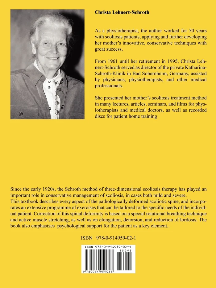 Three-dimensional scoliosis therapy has for decades played an established role in the conservative management of mild and even of severe scoliosis. As well as describing every aspect of the pathologically curved, deformed spine, this textbook incorporates an extensive programme of exercises that can be tailored specifically to the needs of the individual patient. As outlined in Three-Dimensional Scoliosis Therapy: The Schroth Breathing Orthopaedic System, correction of the spinal deformity is based on a special breathing technique and active muscle stretching, as well as on elongation, detorsion and reduction of lordosis. The provision of psychological support for the patient is also emphasised as a key element. Christa Lehnert-Schroth born 1924 in Meissen She worked as a physiotherapist for about 50 years with scoliosis patients and further developed her mother’s breathing orthopaedic technique with great success. Between 1961 and 1995 Christa Lehnert-Schroth – always surrounded by physicians – was director of the private Katharina-Schroth-Klinik in Bad Sobernheim/Germany. In many lectures, articles, seminars and films for physiotherapists and medical doctors in addition to recorded discs for patient’s training at home she illustrated her mother’s special method for scoliosis assuring well being of many patients and in honor her mother’s legacy.