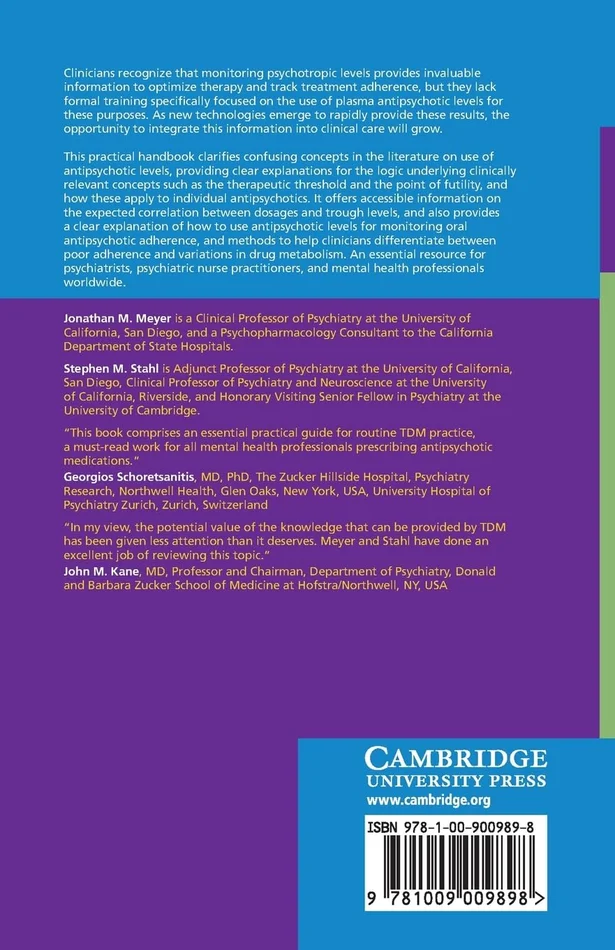 Clinicians recognize that monitoring psychotropic levels provides invaluable information to optimize therapy and track treatment adherence, but they lack formal training specifically focused on the use of plasma antipsychotic levels for these purposes. As new technologies emerge to rapidly provide these results, the opportunity to integrate this information into clinical care will grow. This practical handbook clarifies confusing concepts in the literature on use of antipsychotic levels, providing clear explanations for the logic underlying clinically relevant concepts such as the therapeutic threshold and the point of futility, and how these apply to individual antipsychotics. It offers accessible information on the expected correlation between dosages and trough levels, and also provides a clear explanation of how to use antipsychotic levels for monitoring oral antipsychotic adherence, and methods to help clinicians differentiate between poor adherence and variations in drug metabolism. An essential resource for psychiatrists, psychiatric nurse practitioners, and mental health professionals worldwide.