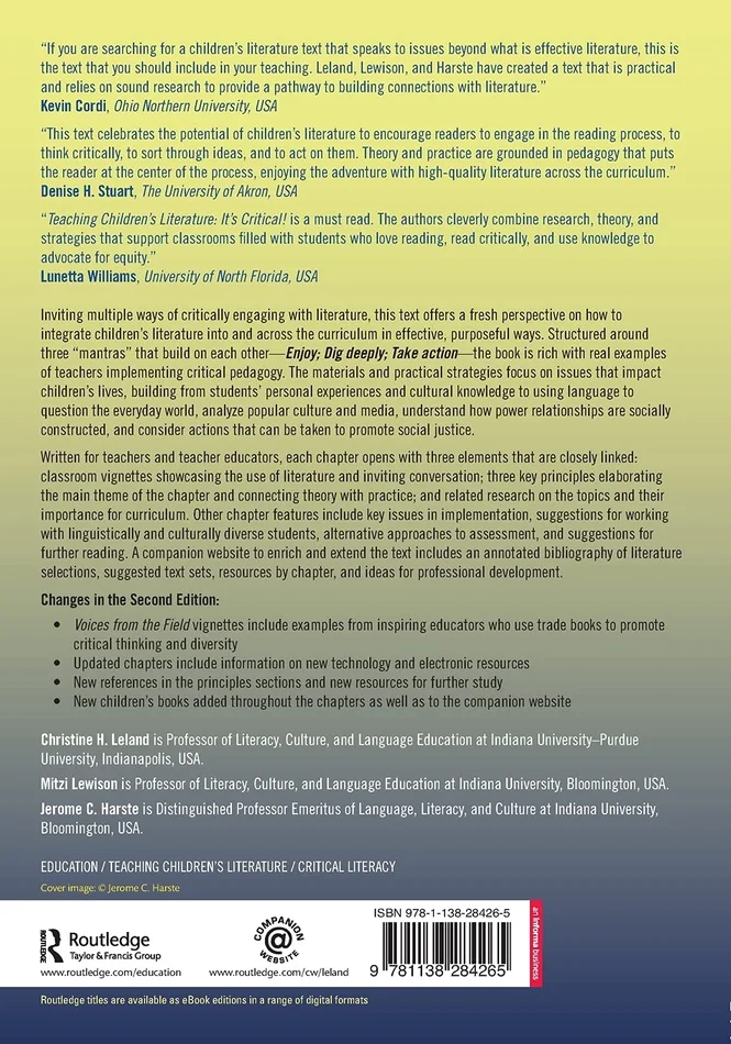 Written for teachers and teacher educators, each chapter opens with three elements that are closely linked: classroom vignettes showcasing the use of literature and inviting conversation; three key principles elaborating the main theme of the chapter and connecting theory with practice; and related research on the topics and their importance for curriculum. Other chapter features include key issues in implementation, suggestions for working with linguistically and culturally diverse students, alternative approaches to assessment, and suggestions for further reading. A companion website to enrich and extend the text includes an annotated bibliography of literature selections, suggested text sets, resources by chapter, and ideas for professional development.