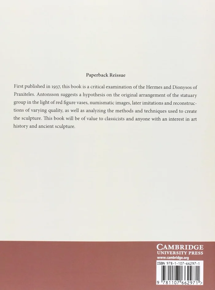 First published in 1937, this book is a critical examination of the Hermes and Dionysos of Praxiteles. Antonsson suggests a hypothesis on the original arrangement of the statuary group in the light of red figure vases, numismatic images, later imitations and reconstructions of varying quality, as well as analyzing the methods and techniques used to create the sculpture. This book will be of value to classicists and anyone with an interest in art history and ancient sculpture.