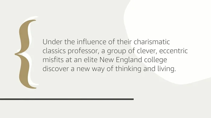 Under the influence of a charismatic classics professor, a group of clever, eccentric misfits at a New England college discover a way of thought and life a world away from their banal contemporaries. But their search for the transcendent leads them down a dangerous path, beyond human constructs of morality.