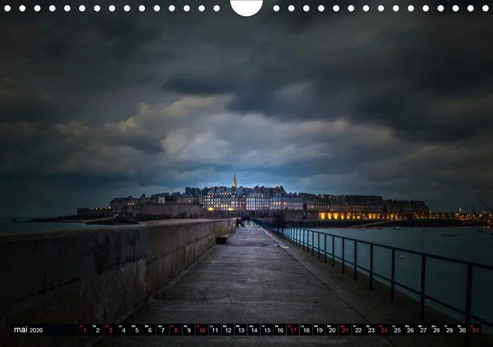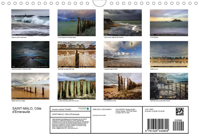 Saint-Malo possde une atmosphre particulire, qui se dvoile subtilement dans la lumire du petit matin ou du soir, dans la course du vent et des nuages, dans la brume qui dvoile les lignes de ses paisses murailles, et qui, pendant un court instant, nous plonge au coeur mme de son histoire, de ses lgendes. En une fraction de seconde, nous voil transports dans un autre espace temps, marchant sur les pas de Franois-Ren Chateaubriand ou de Jacques Cartier quittant le port de Saint-Malo. Les calendriers Calvendo sont des produits haut de gamme – avec ces plus qui font la diffrence : nos calendriers prsentent bien toute lanne grce leur papier de qualit suprieure et leur reliure spirales pour une manipulation des pages plus aise et une tenue parfaitement droite contre le mur. Un film plastique transparent protge la couverture de ces calendriers toujours plus solides, qui se dclinent dsormais en cinq langues. Offrez-vous un calendrier Calvendo qui reste beau tout au long de lanne. Ce calendrier succs a t rdit cette anne avec les mmes images et une grille calendaire mise jour.