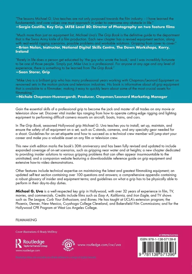 , seasoned Hollywood grip Michael G. Uva teaches you to install, set up, maintain, and ensure the safety of all equipment on a set, such as C-stands, cameras, and any specialty gear needed for a shoot. Guidelines for on-set etiquette and how to succeed as a technical crew member will jumpstart your career and make you a valuable asset on any film or television crew.