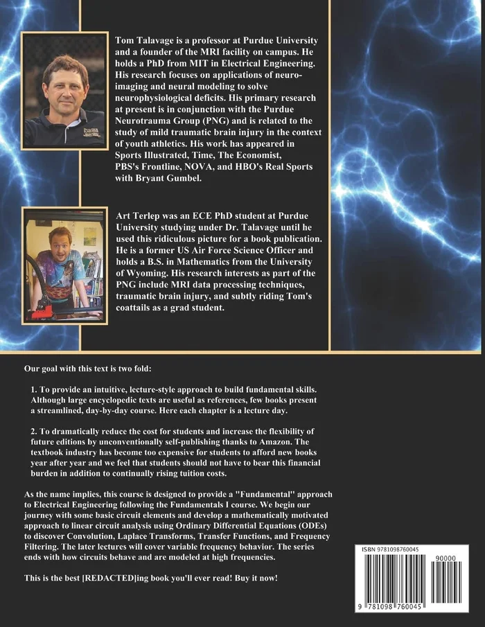As the name implies, this course is designed to provide a “Fundamental” approach to Electrical Engineering following the Fundamentals I course. We begin our journey with some basic circuit elements and develop a mathematically motivated approach to linear circuit analysis using Ordinary Differential Equations (ODEs) to discover Convolution, Laplace Transforms, Transfer Functions, and Frequency Filtering. The later lectures will cover variable frequency behavior. The series ends with how circuits behave and are modeled at high frequencies.Our goal with this text is two fold: 1. To provide a more specific, lecture-style approach for formal course documentation. Although large encyclopedic texts are useful as references, one will not be required for this course. 2. To dramatically reduce the cost for students and increase the flexibility of future editions by unconventionally self-publishing. The textbook industry has become too expensive for students to afford new books year after year and we feel that students should not have to bear the financial burden in addition to continually rising tuition costs. The low cost will hopefully encourage students to keep this packet as a reference as they professionally progress (rather than sell it back for cash to buy next semester’s books!) Funds collected from sales directly help support further development of this packet and the course for future generations. We appreciate your help!