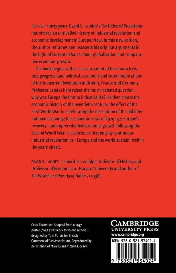 In this new edition of his classic history on revolution and economic development in Europe, David Landes reasserts his original arguments in the light of current debates about globalization and comparative economic growth. Questions about why Europe was the first to industrialize and the viability of the post-war economic boom are as controversial as ever and Landes concludes that only by continuous industrial revolution can Europe and the world sustain itself in the years ahead. First Edition Hb (1969): 0-521-07200-X First Edition Pb (1969): 0-521-09418-6