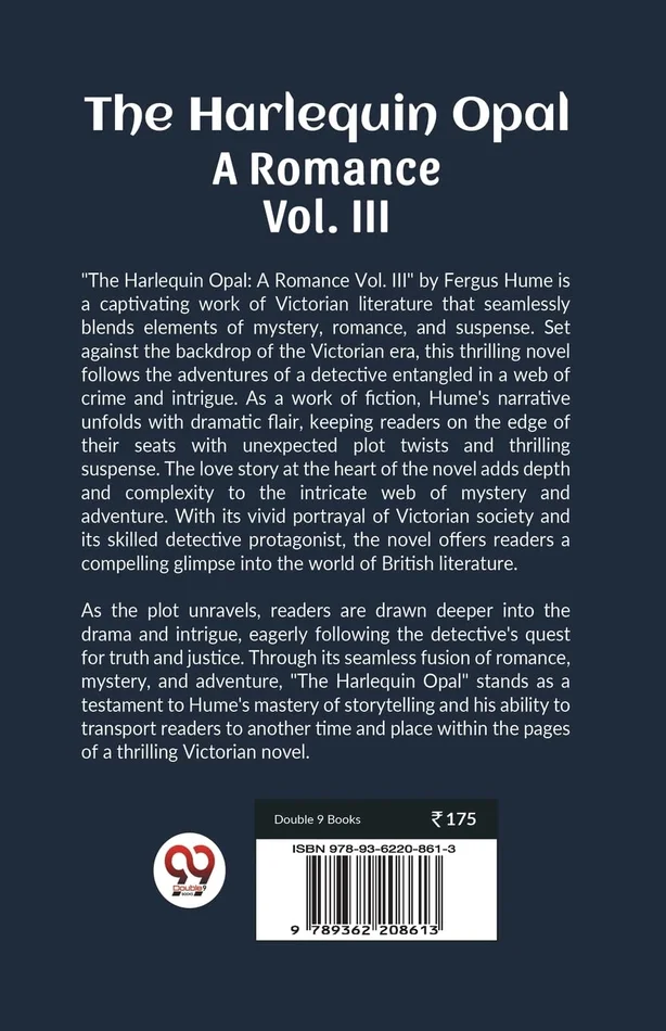 “The Harlequin Opal: A Romance Vol. III” by Fergus Hume is a captivating work of Victorian literature that seamlessly blends elements of mystery, romance, and suspense. Set against the backdrop of the Victorian era, this thrilling novel follows the adventures of a detective entangled in a web of crime and intrigue. As a work of fiction, Hume’s narrative unfolds with dramatic flair, keeping readers on the edge of their seats with unexpected plot twists and thrilling suspense. The love story at the heart of the novel adds depth and complexity to the intricate web of mystery and adventure. With its vivid portrayal of Victorian society and its skilled detective protagonist, the novel offers readers a compelling glimpse into the world of British literature. As the plot unravels, readers are drawn deeper into the drama and intrigue, eagerly following the detective’s quest for truth and justice. Through its seamless fusion of romance, mystery, and adventure, “The Harlequin Opal” stands as a testament to Hume’s mastery of storytelling and his ability to transport readers to another time and place within the pages of a thrilling Victorian novel.