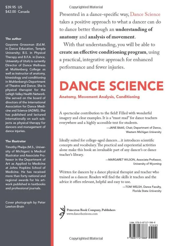 Rather than focusing on dance injuries, this book takes a positive approach showing what a dancer can do to dance better, which, in turn, will decrease injury rates. It presents human anatomy and motion in a functional, dance-specific way that teaches the readers to appreciate and take ownership of their bodies through a tour of the musculoskeletal system and movement analysis. The book is divided into three parts. Part one, Anatomy, describes the specific characteristics that affect motion at each individual joint, demonstrated by a variety of hands-on activities for readers to perform. Part two, Movement Analysis, discusses muscles that produce movement and introduces readers to a system of movement analysis. Part three, Conditioning, provides a practical, integrative approach to exercise for enhanced performance. The written material is accompanied by anatomical line drawings commissioned for the book, photographs, and an assortment of experiential activities specifically designed for dancers.
