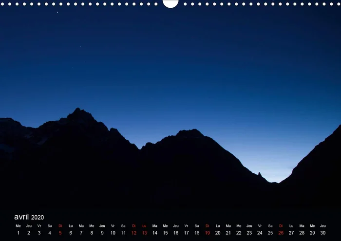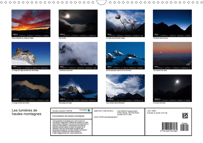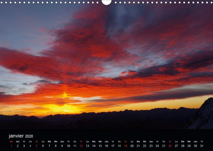 Du lever au coucher de soleil, du lever au coucher de lune, il y a tant de lumires diffrentes capturer. Les montagnes changent au gr des lumires. Les calendriers Calvendo sont des produits haut de gamme – avec ces plus qui font la diffrence : nos calendriers prsentent bien toute lanne grce leur papier de qualit suprieure et leur reliure spirales pour une manipulation des pages plus aise et une tenue parfaitement droite contre le mur. Un film plastique transparent protge la couverture de ces calendriers toujours plus solides, qui se dclinent dsormais en cinq langues. Offrez-vous un calendrier Calvendo qui reste beau tout au long de lanne. Ce calendrier succs a t rdit cette anne avec les mmes images et une grille calendaire mise jour.