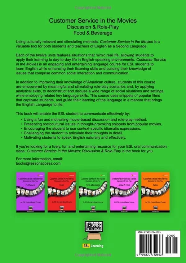 is designed for ESL oral communication classes in a hospitality program. The aim of this course is to improve conversational fluency and refine the four key language skills, while deepening understanding of customer service skills together with social and cultural issues as reflected in English language film. Customer service situation snippets from well-known movies provide engaging, language-rich, audio-visual language model. Critical analysis and discussion of (near) real-world social situations portrayed in contemporary movies provides ideal opportunity for the language student to improve language skills in a motivating and entertaining manner.