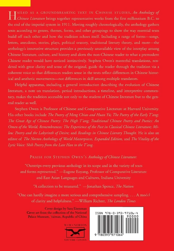 This collection of over 600 pieces, translated with great clarity and sense of the original, presents the tradition in historical and aesthetic context. Moving roughly chronologically through the tradition,