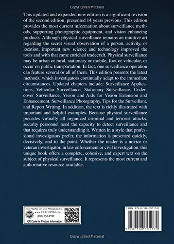 This updated and expanded new edition is a significant revision of the second edition, presented 14 years previous. This edition provides the most current information about surveillance methods, supporting photographic equipment, and vision enhancing products. Although physical surveillance remains an intuitive art regarding the secret visual observation of a person, activity, or location, important new science and technology improved the tools and with that came enriched tradecraft. Physical surveillance may be urban or rural, stationary or mobile, foot or vehicular, or occur on public transportation. In fact, one surveillance operation can feature several or all of them. This edition presents the latest methods, which investigators continually adapt to the immediate circumstances. Updated chapters include: Surveillance Applications, Vehicular Surveillance, Stationary Surveillance, Undercover Surveillance, Vision and Aids for Vision Extension and Enhancement, Surveillance Photography, Tips for the Surveillant, and Report Writing. In addition, the text is richly illustrated with important and helpful examples. Because physical surveillance precedes virtually all organized criminal and terrorist attacks, security personnel need the capacity to detect surveillance and that requires truly understanding it. Written in a style that professional investigators prefer, the information is presented quickly, decisively, and to the point. Whether the reader is a novice or veteran investigator, in law enforcement or civil investigation, this unique book offers a complete, cohesive, and expert text on the subject of physical surveillance. It represents the most current and authoritative resource available.