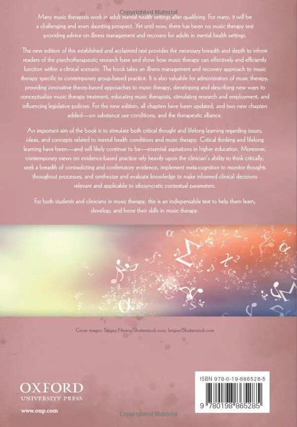 Many music therapists work in adult mental health settings after qualifying. For many, it will be a challenging and even daunting prospect. Yet until now, there has been no psychiatric music therapy text providing advice on illness management and recovery.