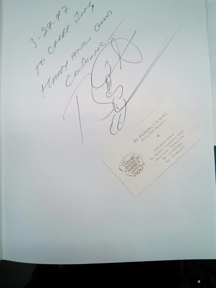 Shares recipes for pastries, tarts, breads, cakes, meringues, cookies, custards, mousses, souffles, frozen desserts, sauces, and decorations, and discusses ingredients and special equipment