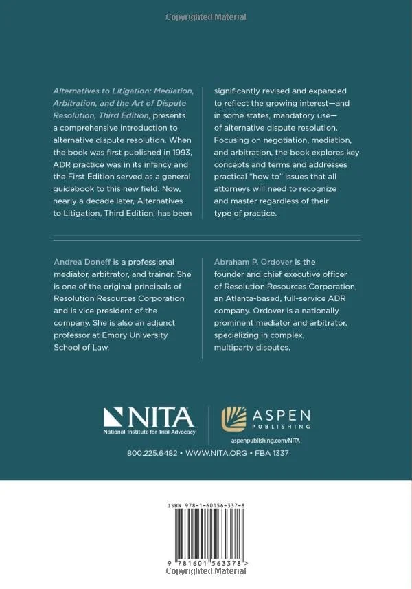 Alternatives to Litigation was first published in 1993 when alternate dispute resolution practice was in its infancy. Now in its Third Edition, this book reflects the growth in this field and also the growing interest and in some states mandatory use of ADR. Authors Andrea Doneff and Abraham Ordover explore key concepts and terms, and address practical how-to issues that all attorneys need to recognize and master regardless of their field of expertise. Alternatives to Litigation includes appendices providing sample agreements, checklists, a model standard of conduct, commentary on ethical issues and other useful resources.