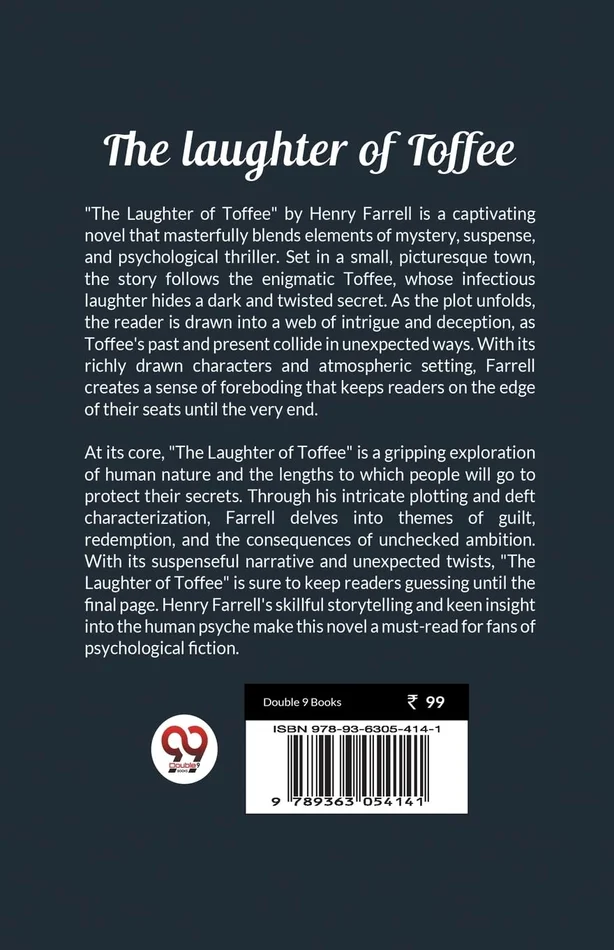 “The Laughter of Toffee” by Henry Farrell is a captivating novel that masterfully blends elements of mystery, suspense, and psychological thriller. Set in a small, picturesque town, the story follows the enigmatic Toffee, whose infectious laughter hides a dark and twisted secret. As the plot unfolds, the reader is drawn into a web of intrigue and deception, as Toffee’s past and present collide in unexpected ways. With its richly drawn characters and atmospheric setting, Farrell creates a sense of foreboding that keeps readers on the edge of their seats until the very end. At its core, “The Laughter of Toffee” is a gripping exploration of human nature and the lengths to which people will go to protect their secrets. Through his intricate plotting and deft characterization, Farrell delves into themes of guilt, redemption, and the consequences of unchecked ambition. With its suspenseful narrative and unexpected twists, “The Laughter of Toffee” is sure to keep readers guessing until the final page. Henry Farrell’s skillful storytelling and keen insight into the human psyche make this novel a must-read for fans of psychological fiction.