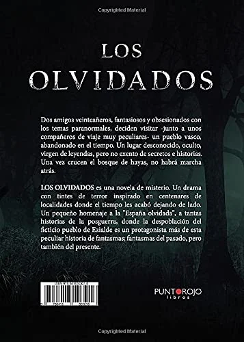 Dos amigos veintea?eros, fantasiosos y obsesionados con los temas paranormales, deciden visitar -junto a unos compa?eros de viaje muy peculiares- un pueblo vasco, abandonado en el tiempo. Un lugar desconocido, oculto, virgen de leyendas, pero no exento de secretos e historias. Una vez crucen el bosque de hayas, no habr芍 marcha atr芍s. LOS OLVIDADOS es una novela de misterio. Un drama con tintes de terror inspirado en centenares de localidades donde el tiempo les acab車 dejando de lado. Un peque?o homenaje a la “Espa?a olvidada”, a tantas historias de la posguerra, donde la despoblaci車n del ficticio pueblo de Ezialde es un protagonista m芍s de esta peculiar historia de fantasmas; fantasmas del pasado, pero tambi谷n del presente.