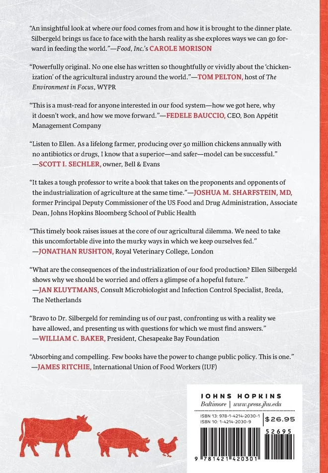 to cover the transformation of all farm animal production. Silbergeld tells the real story of how antibiotics were first introduced into animal feeds in the 1940s, which has led to the emergence of multi-drug-resistant pathogens, such as MRSA. Along the way, she talks with poultry growers, farmers, and slaughterhouse workers on the front lines of exposure, moving from the Chesapeake Bay peninsula that gave birth to the modern livestock and poultry industry to North Carolina, Brazil, and China.